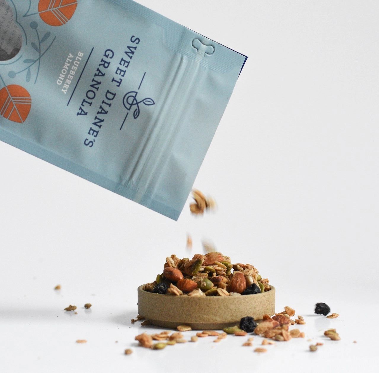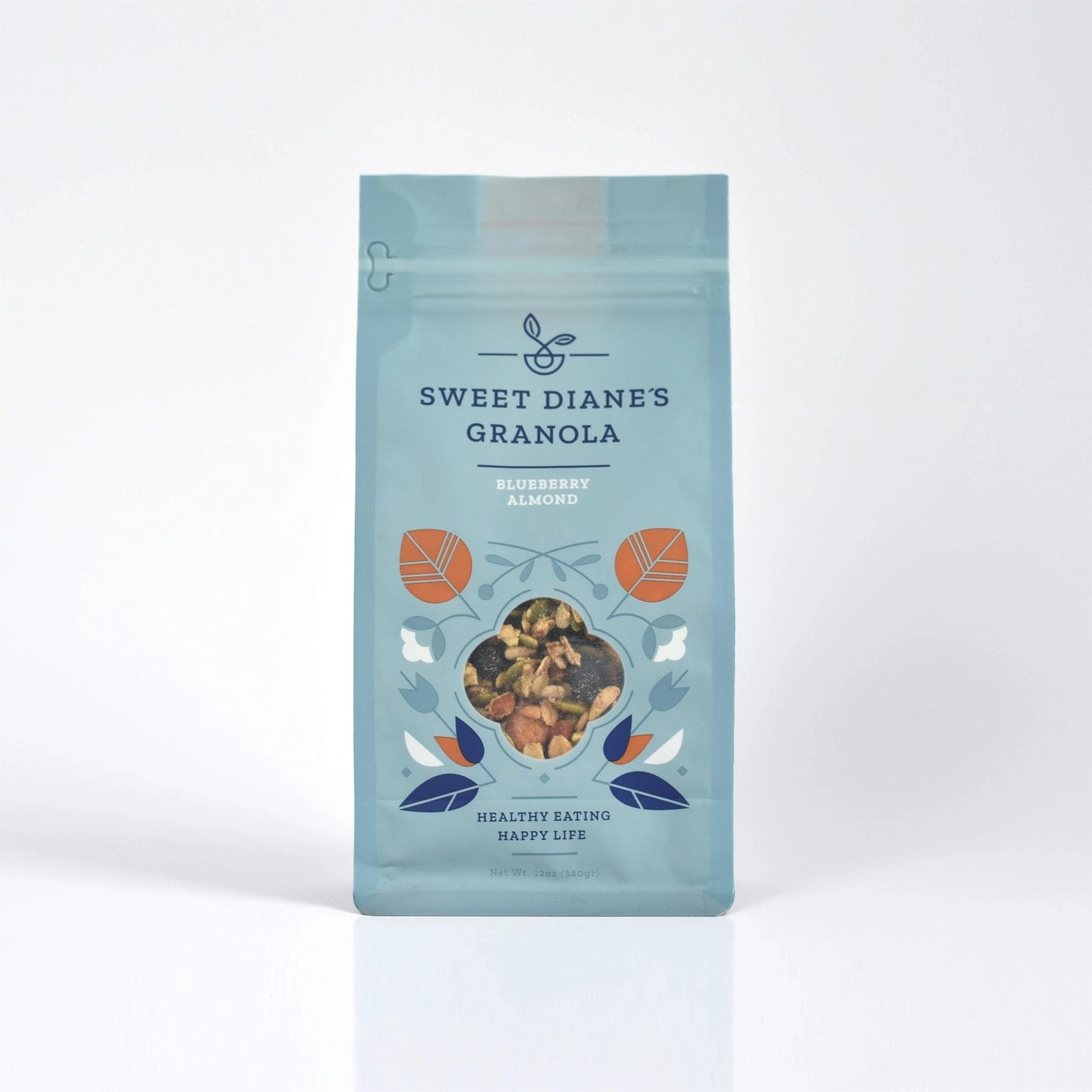 Blueberry Almond: A beautiful mix of sweet blueberries, crunchy almonds and hearty pumpkin seeds makes our Blueberry Almond Granola a superfood powerhouse. It has the benefits of healthy blueberries along with high-protein almonds and healthy whole grain oats, sweetened with a touch of maple syrup. A high protein, fresh tasting granola with a unique flavor profile delights customers. It is all-natural, with most ingredients organic.